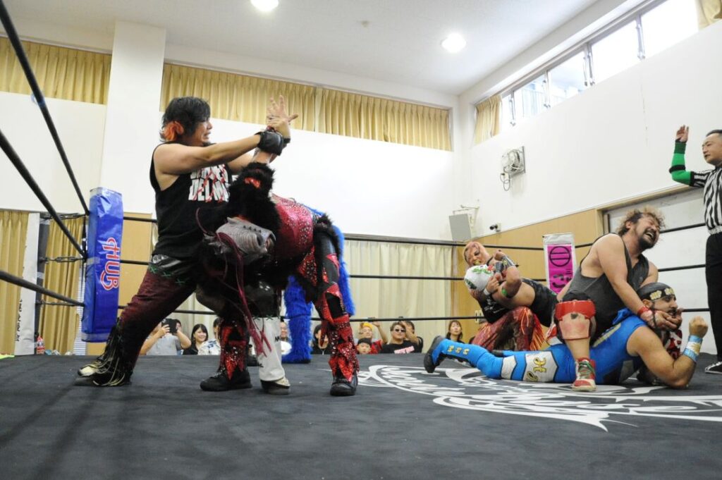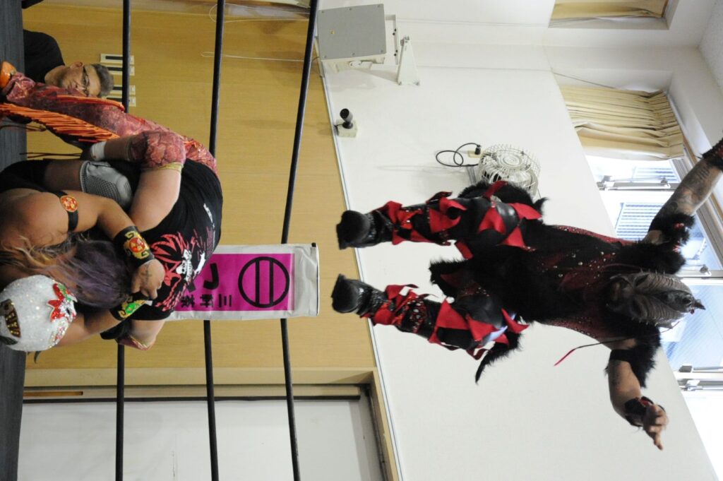 ◯フェリスト、あきば栞 VS イデア、藍川はるか VS ×黒田哲広、バニー及川
