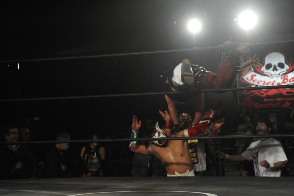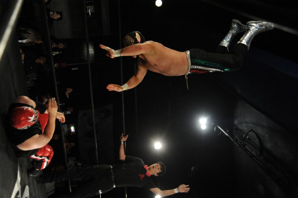 4. ×清水基嗣 (スカイハイプランチャ→片エビ固め) ◯イホ・デ・ドスカラス