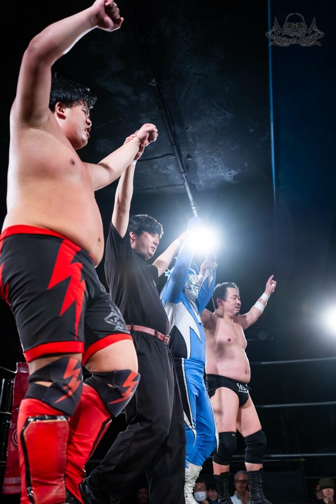 ×フェリスト、山下金吾 VS ◯土井成樹、吉田考志 VS アンディー・ウー、川島真織